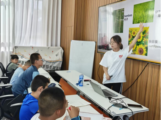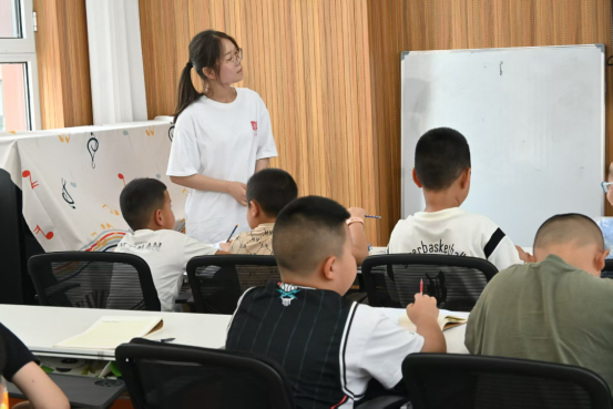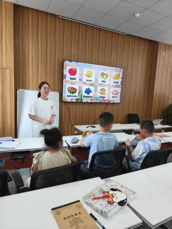 最后,志愿者们带领孩子们系统复习了基础音标。通过分组挑战和卡片练习,孩子们不仅能正确发出元音和辅音,还尝试拼读简单单词,对英语发音有了初步掌握。