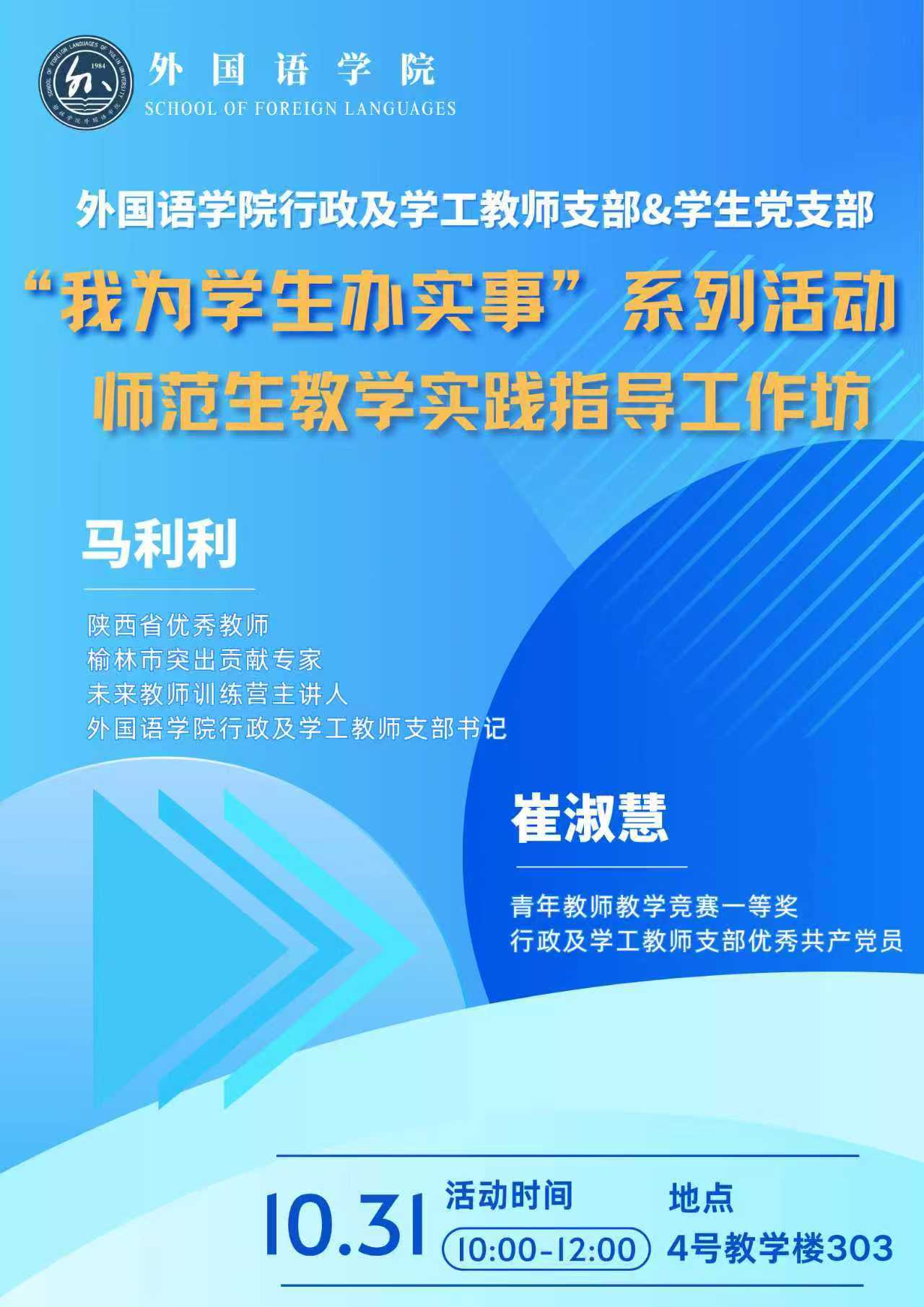 为深入推进“我为学生办实事”实践活动,切实提升师范生教学实践技能与就业竞争力,10月31日上午,外国语学院行政及学工教师支部联合学生党支部在4号教学楼303室成功举办“师范生教学实践指导工作坊”。本次活动邀请学院两位教学经验丰富、荣誉突出的党员教师担任主讲,面向有志于从事教育工作的学生开展针对性指导,共吸引四十余名学生参与。