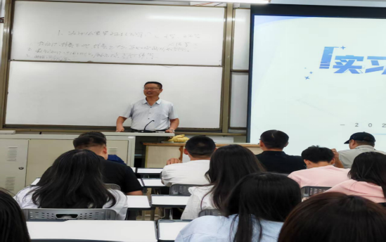 接着,教学秘书封仪璠对实习全流程进行了细致说明。她详细讲解了实习单位对接、实习日志记录、实习报告撰写等环节的具体要求,尤其针对实习材料提交的时间节点、格式规范,以及“校友邦” 系统的签到、周报填写、进度上传等操作要点进行了重点强调,确保同学们清晰掌握实习管理要求,避免因流程疏漏影响实习考核。