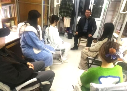 活动开场,徐庆宏副院长率先与同学们亲切交流,细致询问大家的研究生生活适应情况、学术研究进展及住宿需求,认真倾听同学们在文献研读、翻译实践、职业规划等方面的困惑并为同学们提供了针对性建议。他表示,研究生阶段是学术成长和思想进阶的关键期,院领导走进公寓与学生面对面沟通,既是学院精准对接研究生学术与精神成长需求的重要举措,也是将思想引领深度融入研究生学习和生活的具体实践,旨在为同学们搭建更贴心、更高效的交流平台。