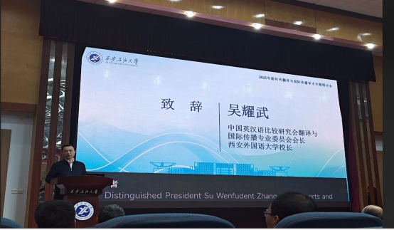 研讨会开幕式由西安石油大学副校长苏文甫致欢迎辞,中国英汉语比较研究会翻译与国际传播专业委员会会长吴耀武发表致辞。会议主旨发言环节,尹晓煌、冯正斌、赵军峰等九位知名专家围绕国别区域研究、法律翻译、AI翻译等议题作报告,为与会者提供了前沿视角。