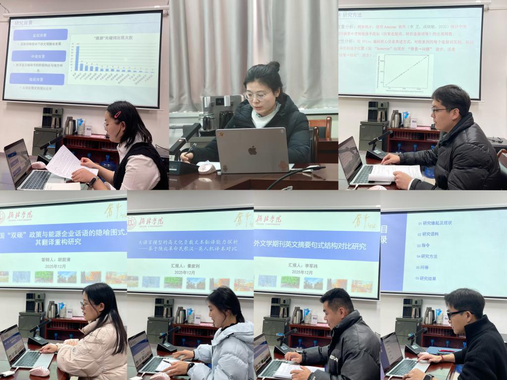 为深入推进研究生学术活动月系列活动,全面提升研究生学术表达能力与研究素养,2025年12月23日14:30,外国语学院 MTI 教育中心在4号教学楼303教室成功举办MTI研究生学术报告大赛。本次比赛是研究生学术活动月的重要组成部分,旨在引导研究生围绕自身研究与实践方向开展规范化学术展示,强化学术意识与创新能力。